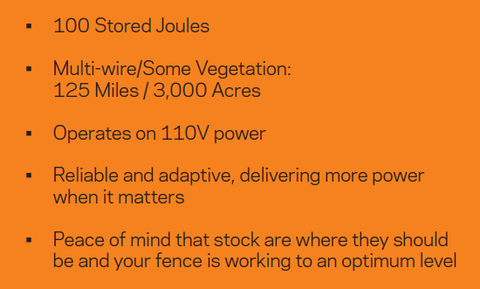 Combining the brute force power of 100 stored joules with the fence monitoring smarts of the i Series accessories, the new M10000i will deliver more power to the back of the farm than any other energizer. Suitable for fencing all types of animals on up to 1000 acres. The M10000i provides incredible fence performance regardless of extreme temperature conditions or unreliable power supply - adjusting power output to suit your fence conditions and minimize power consumption.