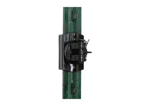- Heavy-duty, snap-on plastic insulators for steel posts.